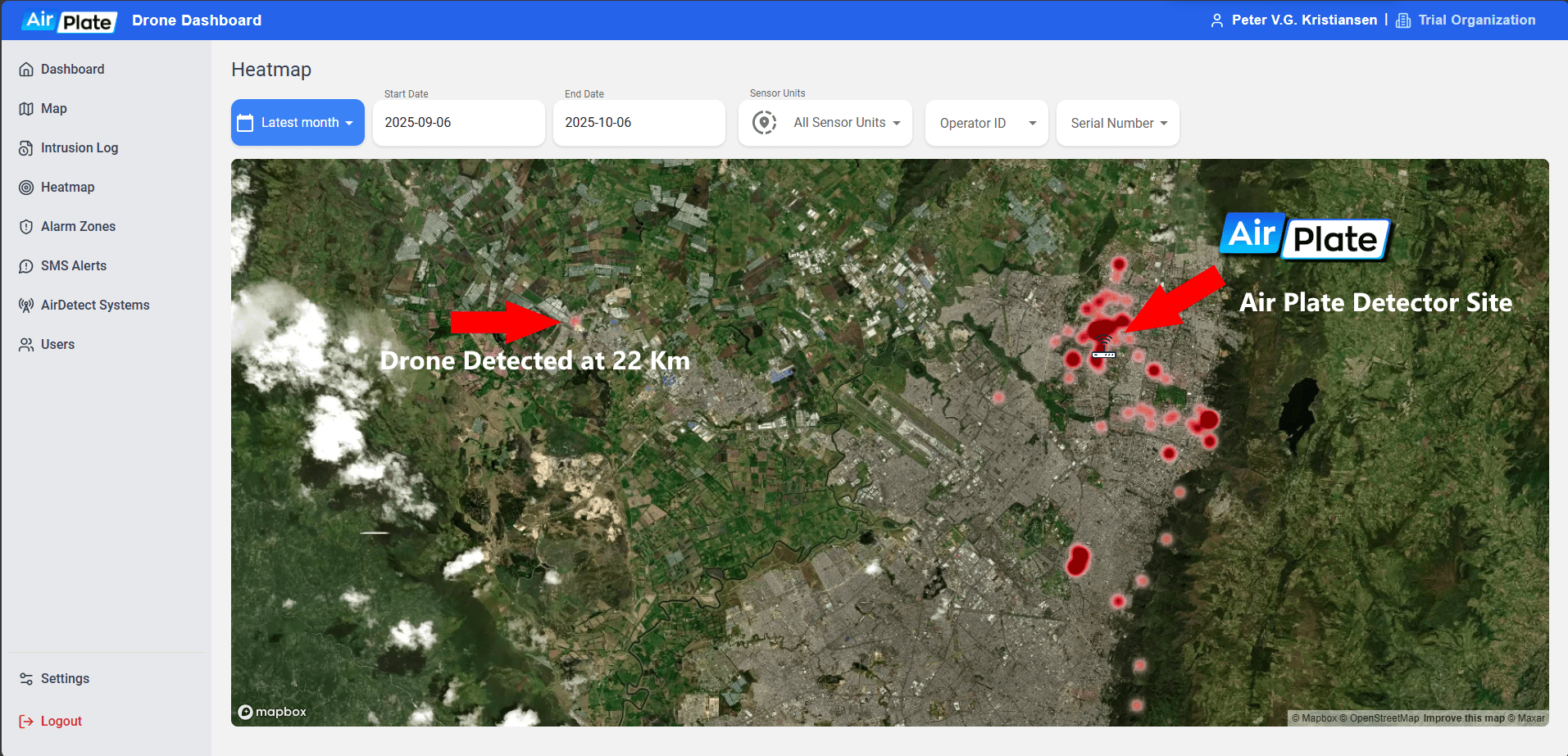 In the world’s most challenging urban environments, where signal interference and city canyons typically limit detection, the AirPlate system has redefined long-range drone security. In a critical deployment over Bogotá, Colombia, AirPlate delivered an unparalleled performance, successfully identifying and tracking unauthorized drone activity at an astounding range of 22 kilometers. This breakthrough capability—far exceeding industry expectations for urban Radio Frequency (RF) and Remote ID detection—provides security teams with the essential minutes needed for decisive action. By transforming dense urban airspace into a transparent, managed zone, AirPlate ensures that high-value assets and critical infrastructure are protected by a protective perimeter wider than any other on the market. Trust AirPlate to deliver the extended sight and real-time intelligence your operation requires to secure tomorrow’s sky today.